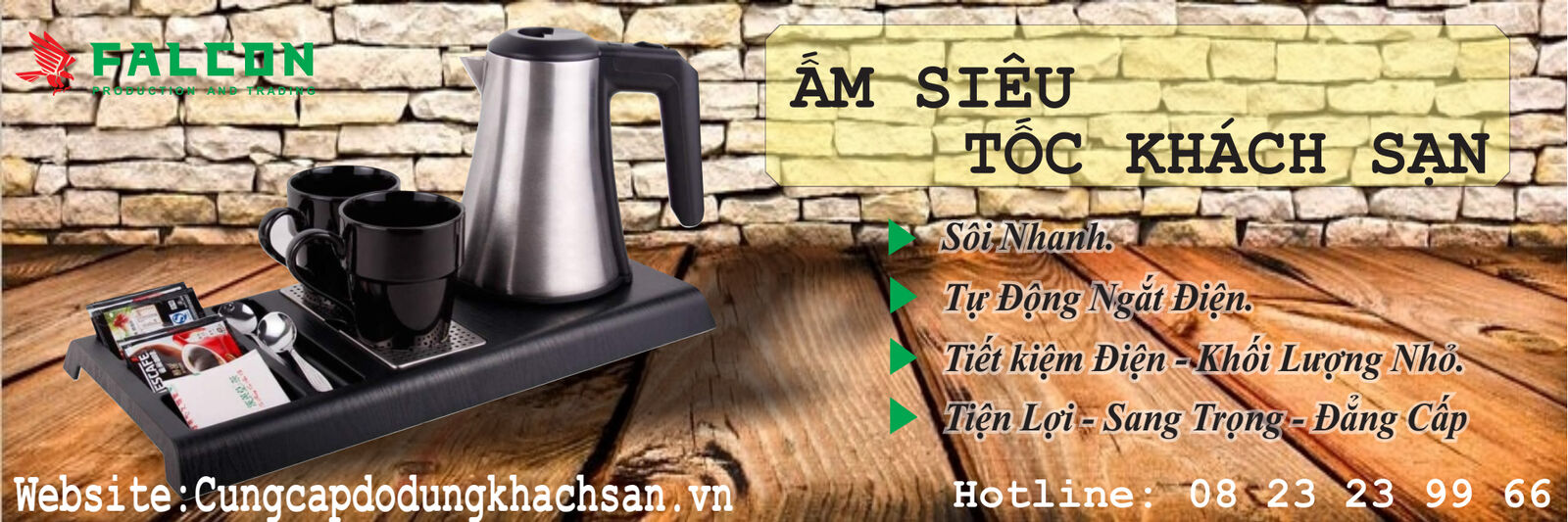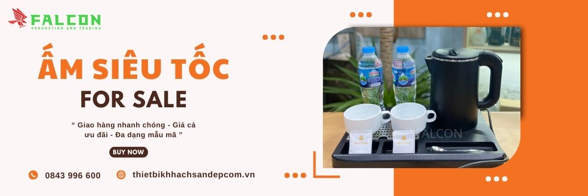 Trong tiêu chuẩn setup buồng phòng khách sạn, resort hiện đại, ấm siêu tốc không chỉ là một thiết bị điện gia dụng thông thường . Mà còn là thước đo sự tinh tế trong dịch vụ chăm sóc khách hàng. Hiểu được nhu cầu của khách hàng, Falcon mang đến giải pháp toàn diện với các dòng ấm siêu tốc chuyên dụng, an toàn và thẩm mỹ.