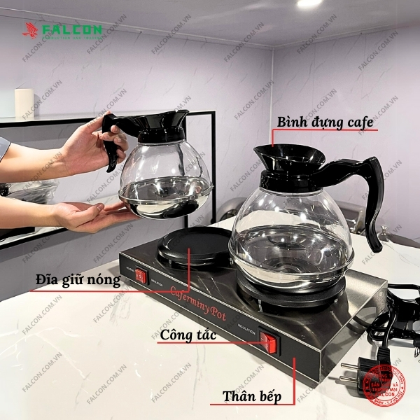 Bếp và bình thủy tinh hâm cafe là thiết bị không thể thiếu tại các quán café, nhà hàng, khách sạn và tiệc buffet. Với thiết kế tiện dụng gồm 2 bình thủy tinh dung tích 1,8L, sản phẩm giúp giữ nhiệt café luôn nóng hổi, thơm ngon và sẵn sàng phục vụ khách hàng mọi lúc. Hãy cùng Thiết bị khách sạn đẹp tìm hiểu thêm về bộ sản phẩm này nhé !